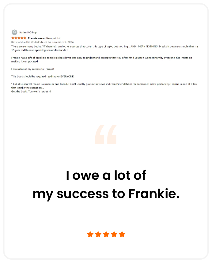 We only promise these courses will make your life easier, faster, and help you to do it with less mistakes. The average person doesn't even complete courses, let alone do anything with them. These are not income claims. You won't automatically make money learning from a course and not doing anything. Your results in life are up to you. These courses only make it 100x easier to implement and sort noise from the signal.